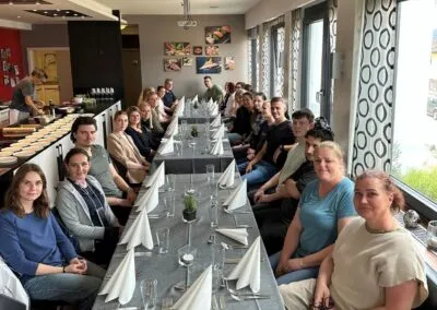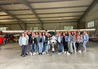 Bei uns gehören Firmenevents fest zur Unternehmenskultur. In der Regel kommen wir zweimal im Jahr zusammen, zu einem Sommer- und einem Winterevent und feiern außerdem besondere Meilensteine unserer Firmengeschichte. 2022 durften wir unser 20-jähriges Jubiläum feiern: Jede Mitarbeiterin und jeder Mitarbeiter erlebte einen individuellen Rundflug im Tragschrauber oder Flugzeug, gefolgt von einem gemeinsamen Essen.
